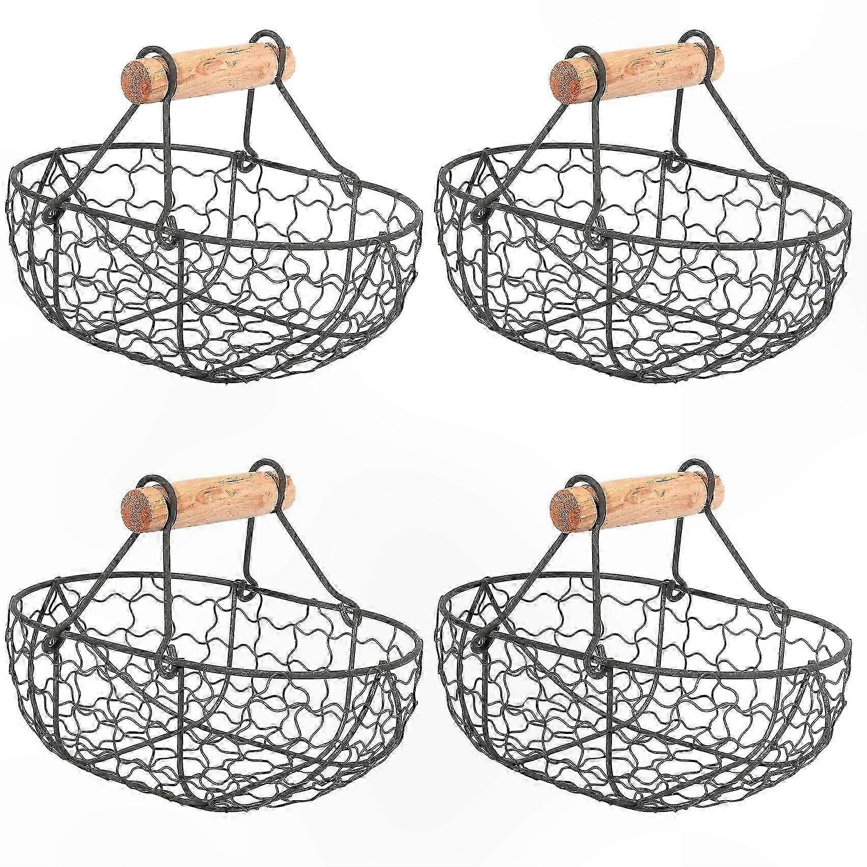 Set of 4 Vintage Metal Baskets with Wooden Handles - Portable and Versatile for Storing Produce, Fruits, Eggs, and Groceries
