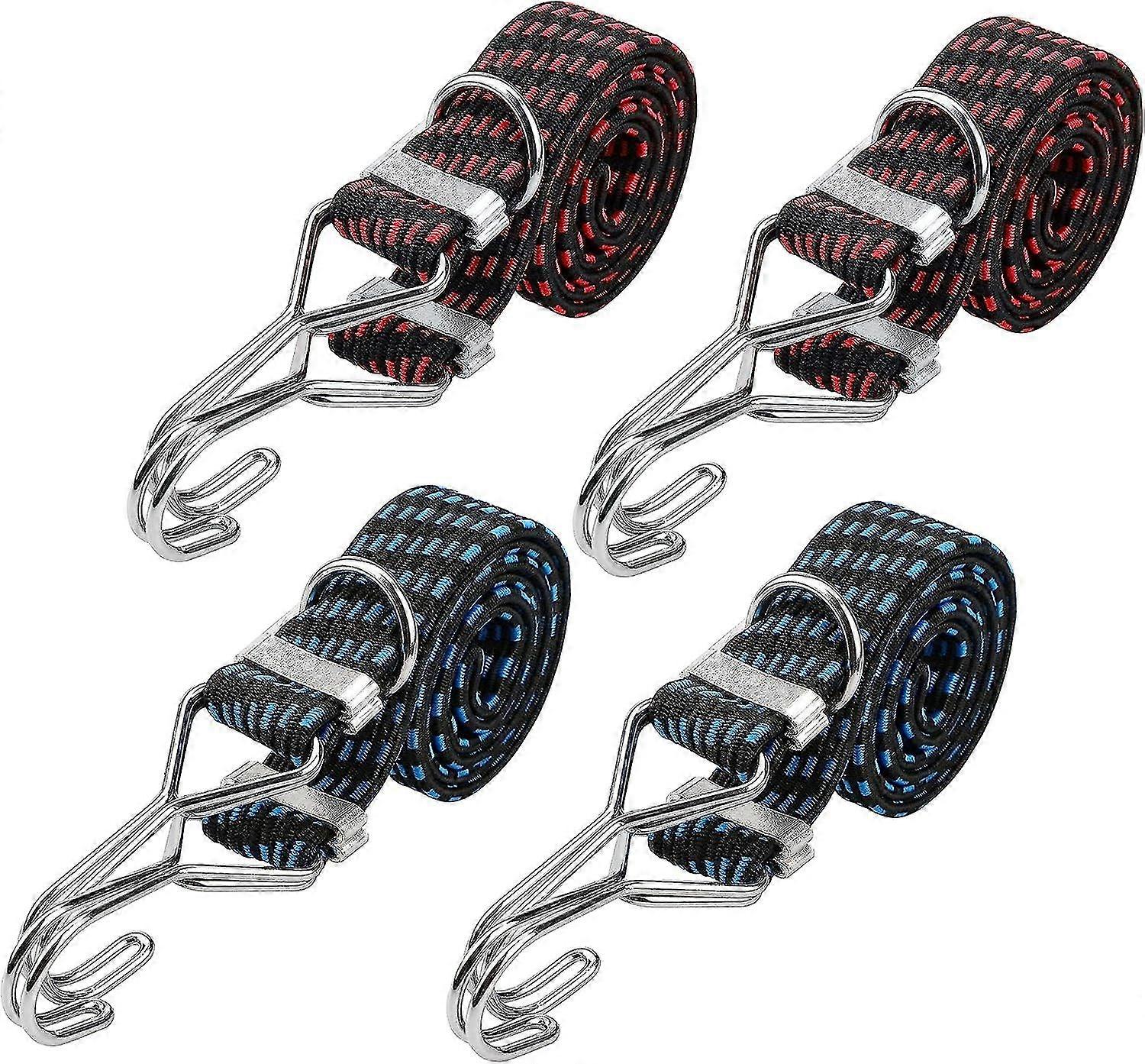 Set Of 4 Double Layer Elastic Tensioners With Hooks, 100 Cm, 4pcs (2 In Black Red Adjustable In 3 Cm, 2 In Black Blue Adjustable In 1 M 3 Cm)