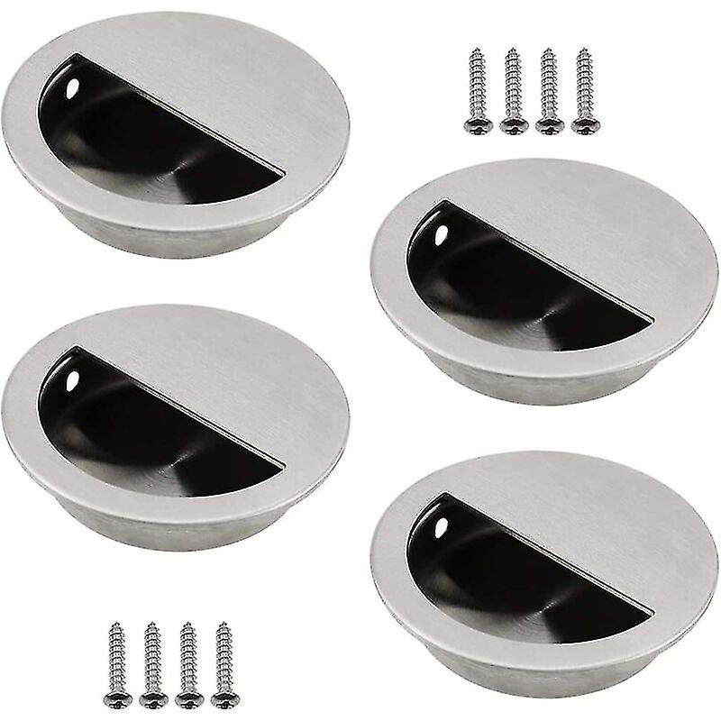 Set Of 4 Silver Stainless Steel Recessed Handles Round Sliding Door Handle 50mm With A 40 X 20mm Semicircular Hole Easy To Pull - For Sliding Door Or