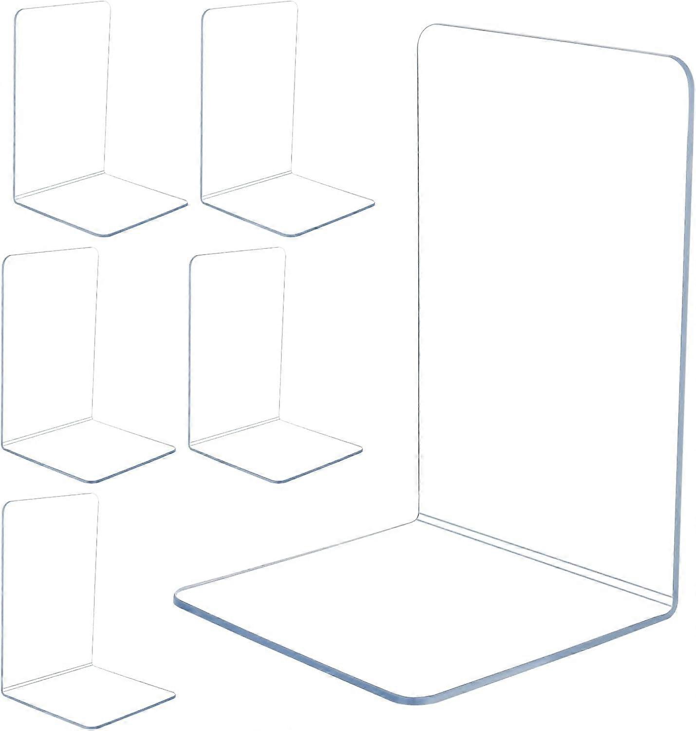 Set of 6 Transparent Acrylic Bookends, 18x12x12 cm, Book Holder Stand for School, Home, Office, Library, Desktop Organizer