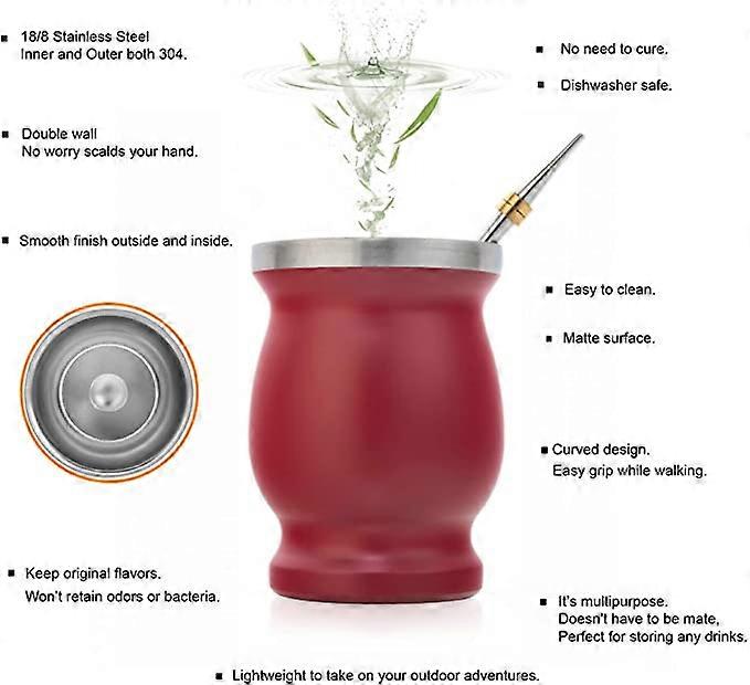 Yerba Mate Gourd Set Double-Wall Stainless Steel Mate Tea Cup and Bombilla Set Includes Yerba Mate Gourd (Cup) With One Bombilla