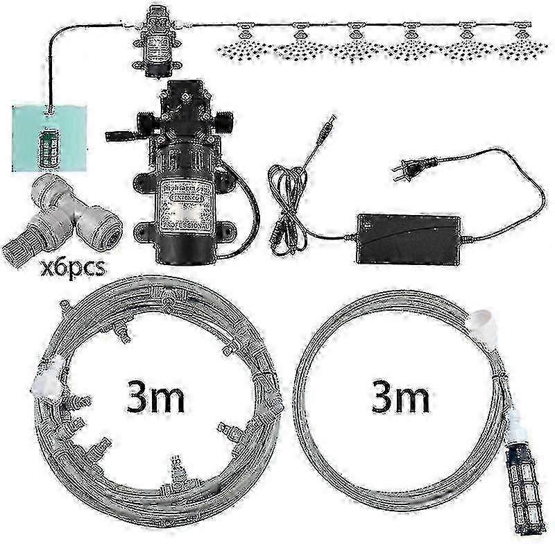 (6M Kit) Smart Misting Cooling System Kit 6-18m 6mm Slip Lock Nozzles Quick Fitting Tee Connectors Compatible Outdoor Garden Terrace Watering-c