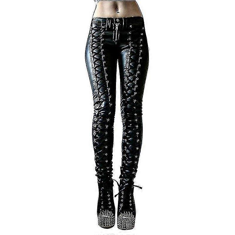 Women's Faux Leather Leggings, Gothic Punk Skinny Pu Leather Pants