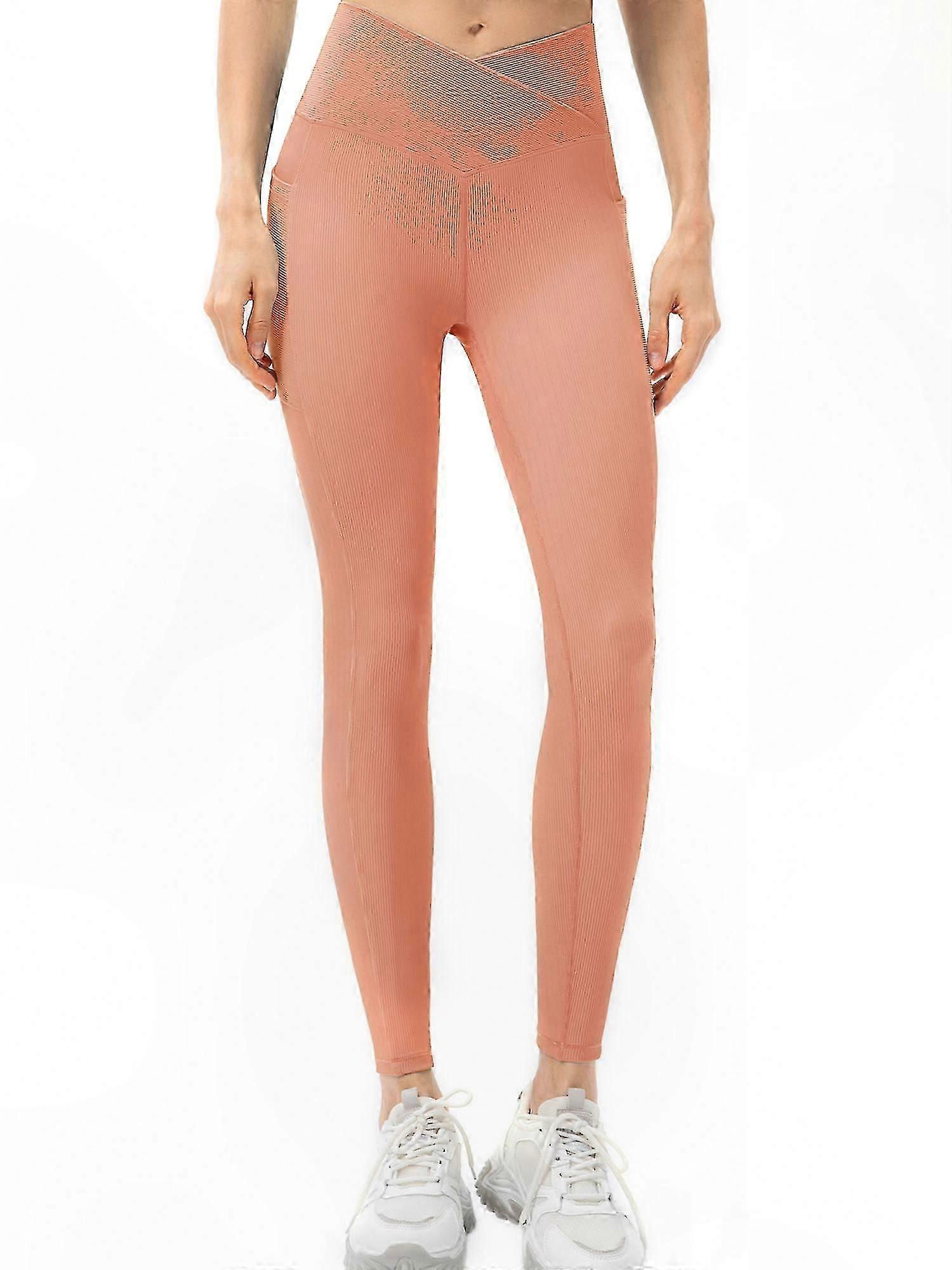 High-Waist Ribbed Leggings with Pockets for Women Athletic Wear Fitness Yoga Tights Sport Pants