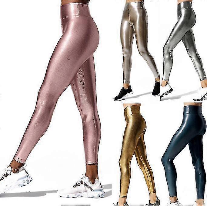 Women's Metallic Leggings Shiny Trousers High Waist Leggings