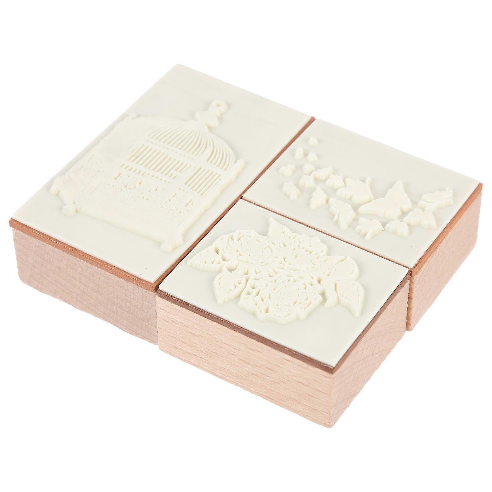 Stamps Craft Diy Diary Stamp Decorative Wooden Stamp Diy Craft Journal Stamp For Handmade Cards Light Brown 10.4X8X3CM 3Pcs