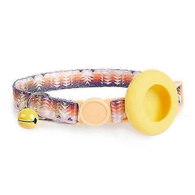 Adjustable Pet Collar with Silicone Case for AirTag Locator Bell Design Pattern Printing Cats Dogs C