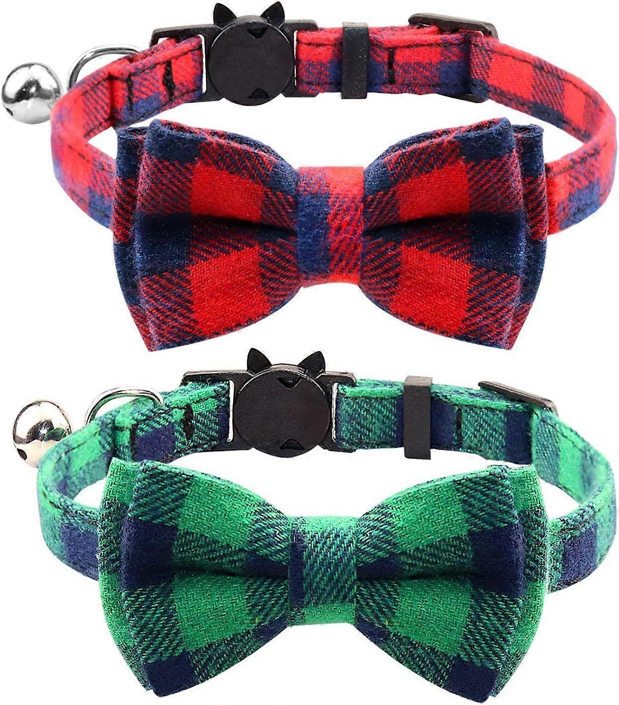 Breakaway Cat Collar with Bow Tie and Bell, Cute Plaid Patterns, 1 or 2 Pack Kitty Safety Collars
