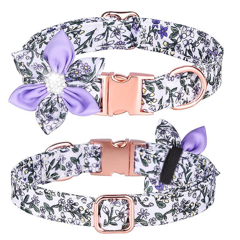 Elegant Little Tail Dog Collar With Hexapetalous Flower, Cotton & Webbing, Dog Collar, Adjustable Dog Collars For Small Medium Large Dogs And Cats