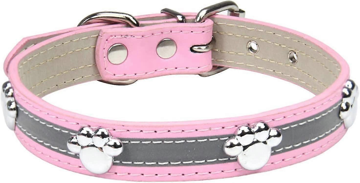 Reflective Dog Collar With Cute Paw Rivet Studded Funny Soft Pu Leather Adjustable Puppy Dog Collars For Small Medium Large Dogs Catsl