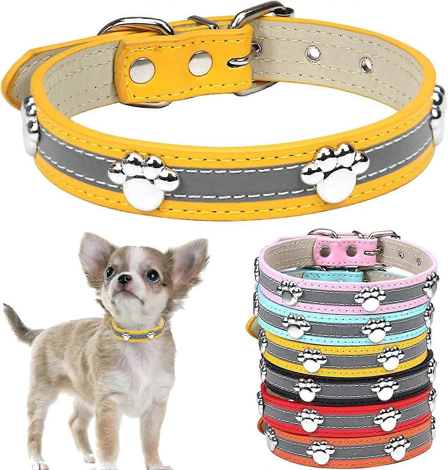 Reflective Dog Collar With Cute Paw Rivet Studded Funny Soft Pu Leather Adjustable Puppy Dog Collars For Small Medium Large Dogs Cats Yellow X-large (