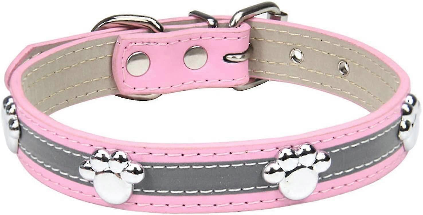 Reflective Dog Collar With Cute Paw Rivet Studded Funny Soft Pu Leather Adjustable Puppy Dog Collars For Small Medium Large Dogs Catss