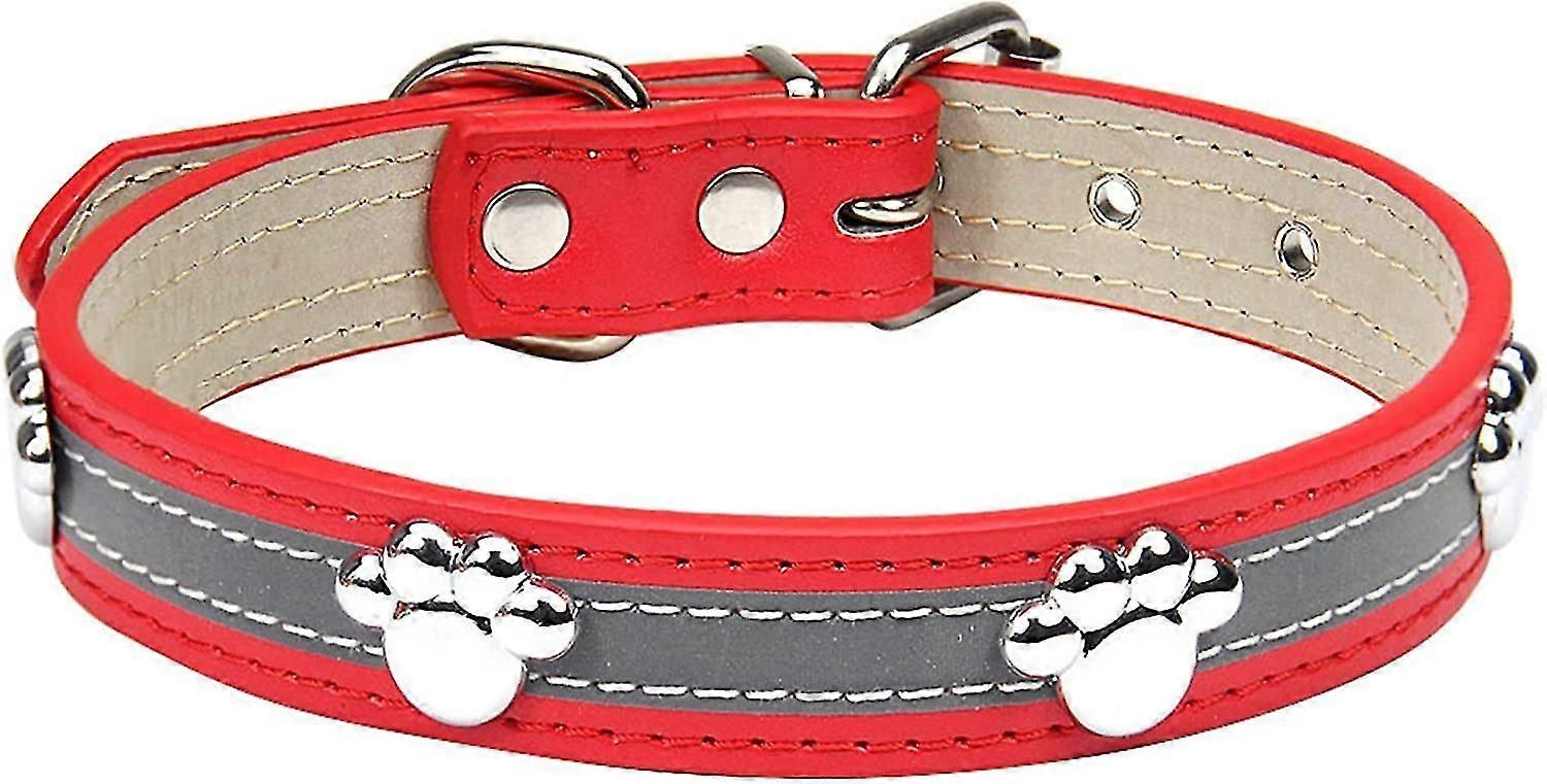 Reflective Dog Collar With Cute Paw Rivet Studded Funny Soft Pu Leather Adjustable Puppy Dog Collars For Small Medium Large Dogs Catsm