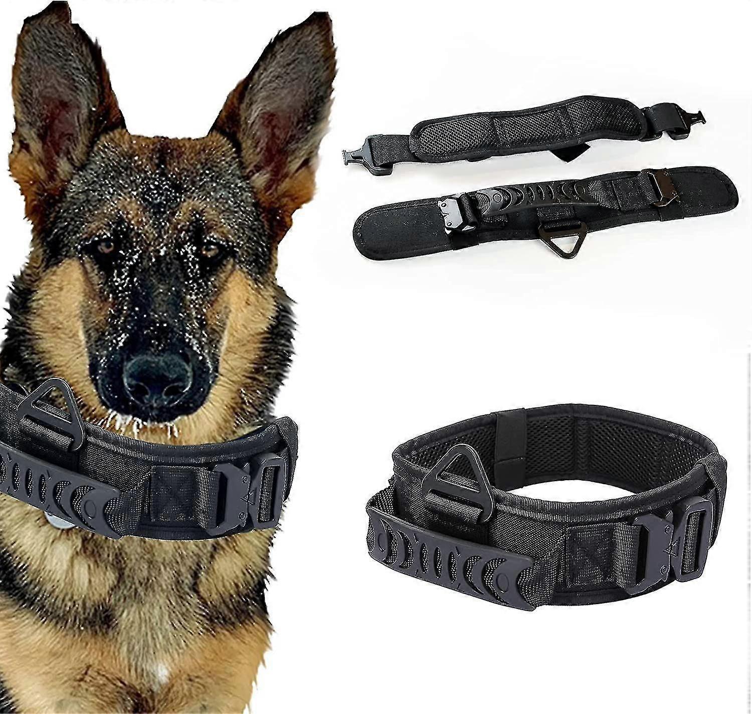 Large Tactical Dog Collar For Dog Training, Military Adjustable Nylon Dog Collar, Heavy Duty Metal Buckle With Handle
