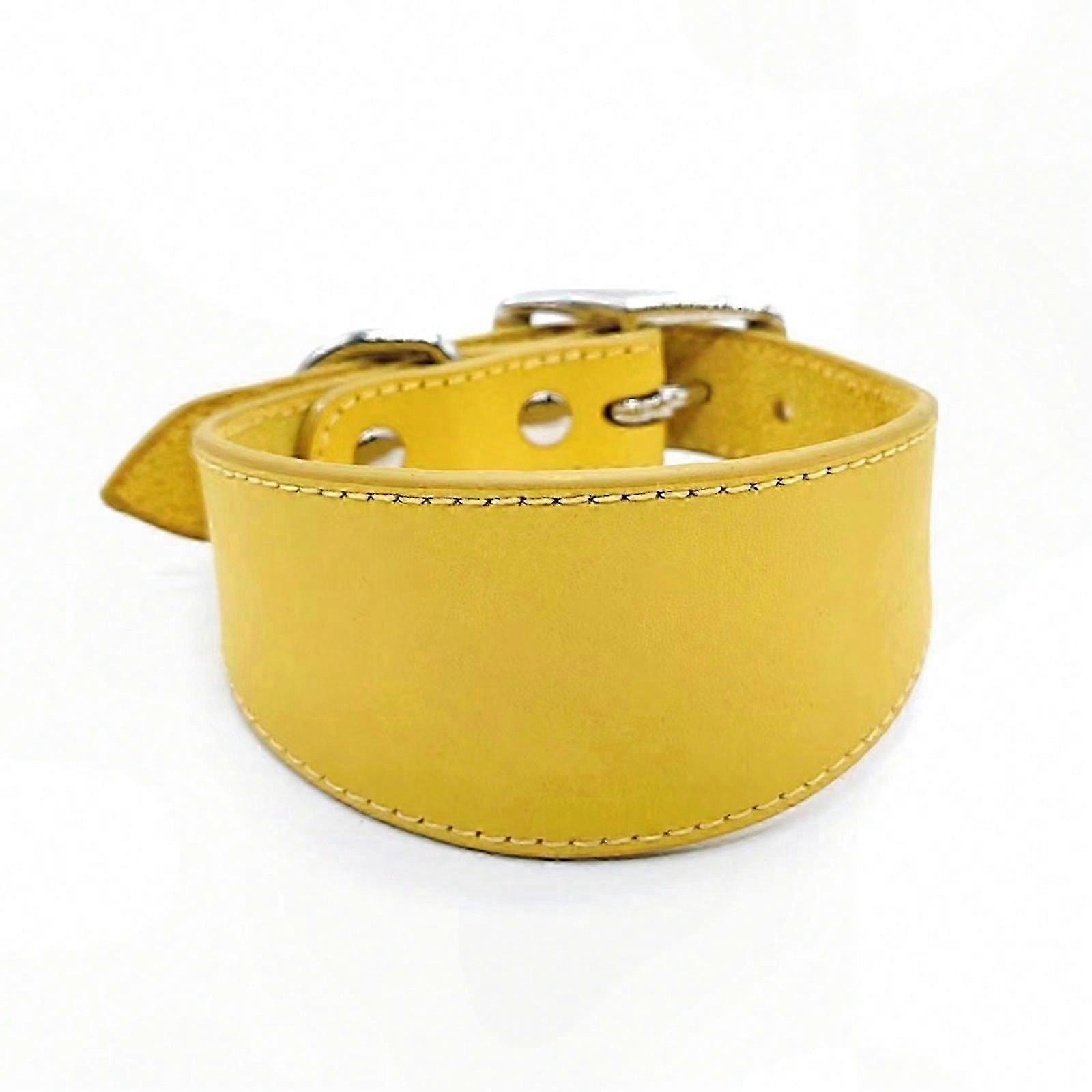 Adjustable Leather Collar for Large Dogs & Italian Greyhounds, Durable Pet Accessory, Yellow Strap