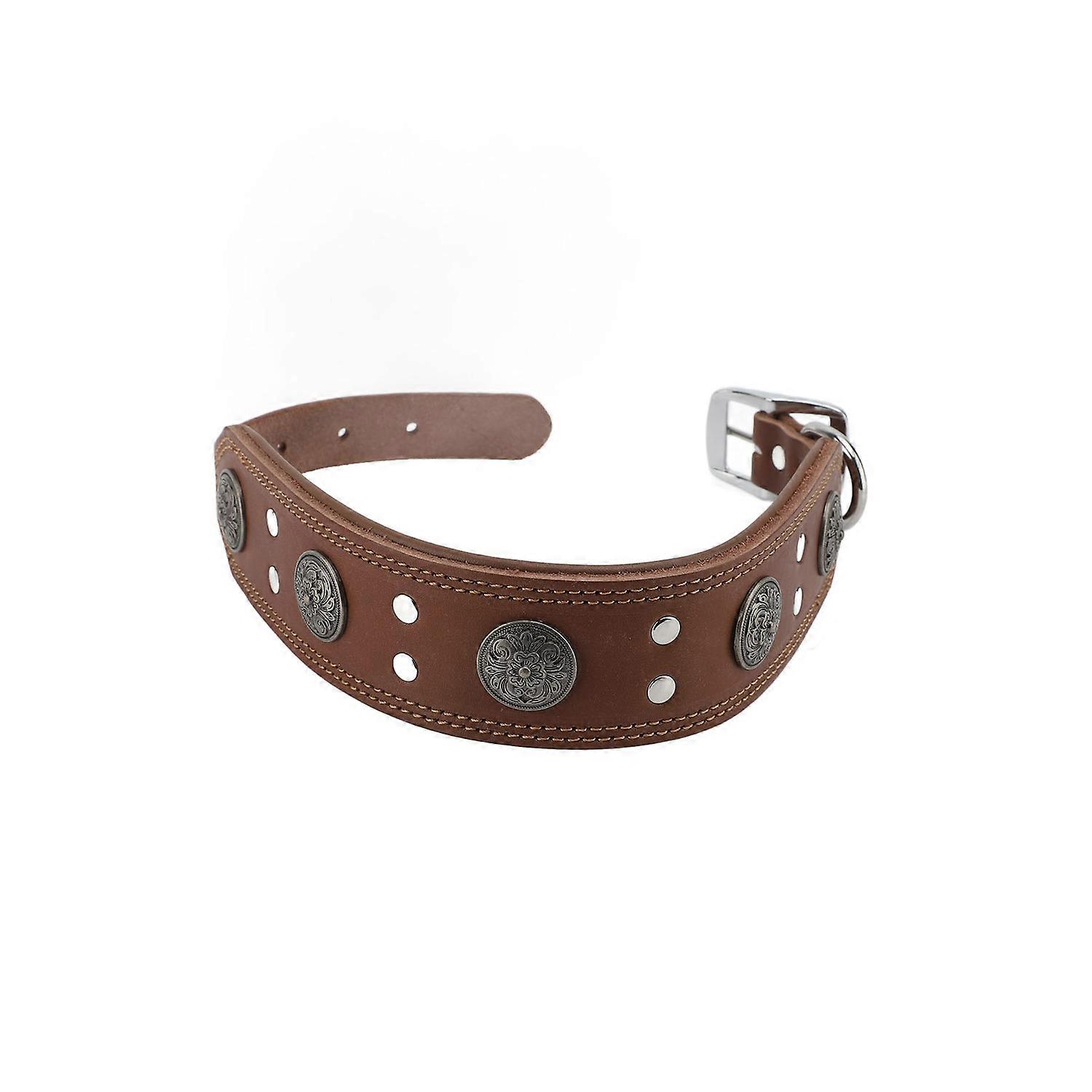 Cowhide Leather Pet Collar Retro Comfortable Metal Alloy Decoration Adjustable Dog Collar for Medium