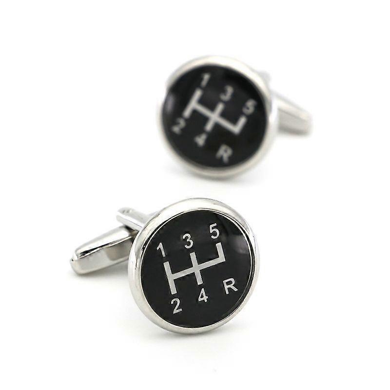 COLLAR AND CUFFS- Premium Cufflinks with Presentation Gift Box - Gear Stick - Perfect for Car Lovers - Solid Brass - Round Gear Knob - Black and White