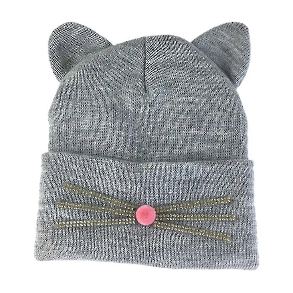 Casual Funny Knitted Hat With Diamond For Cat Whiskers Beanie Hat Wild Warm Unis