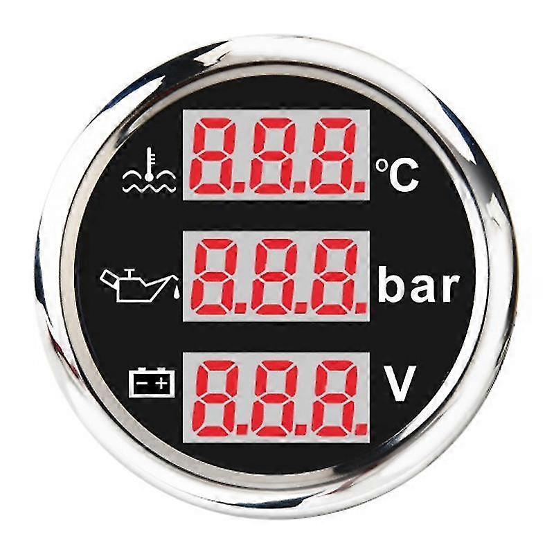 Universal 52mm 3 In 1 Multi-function Digital Gauge Waterproof Black