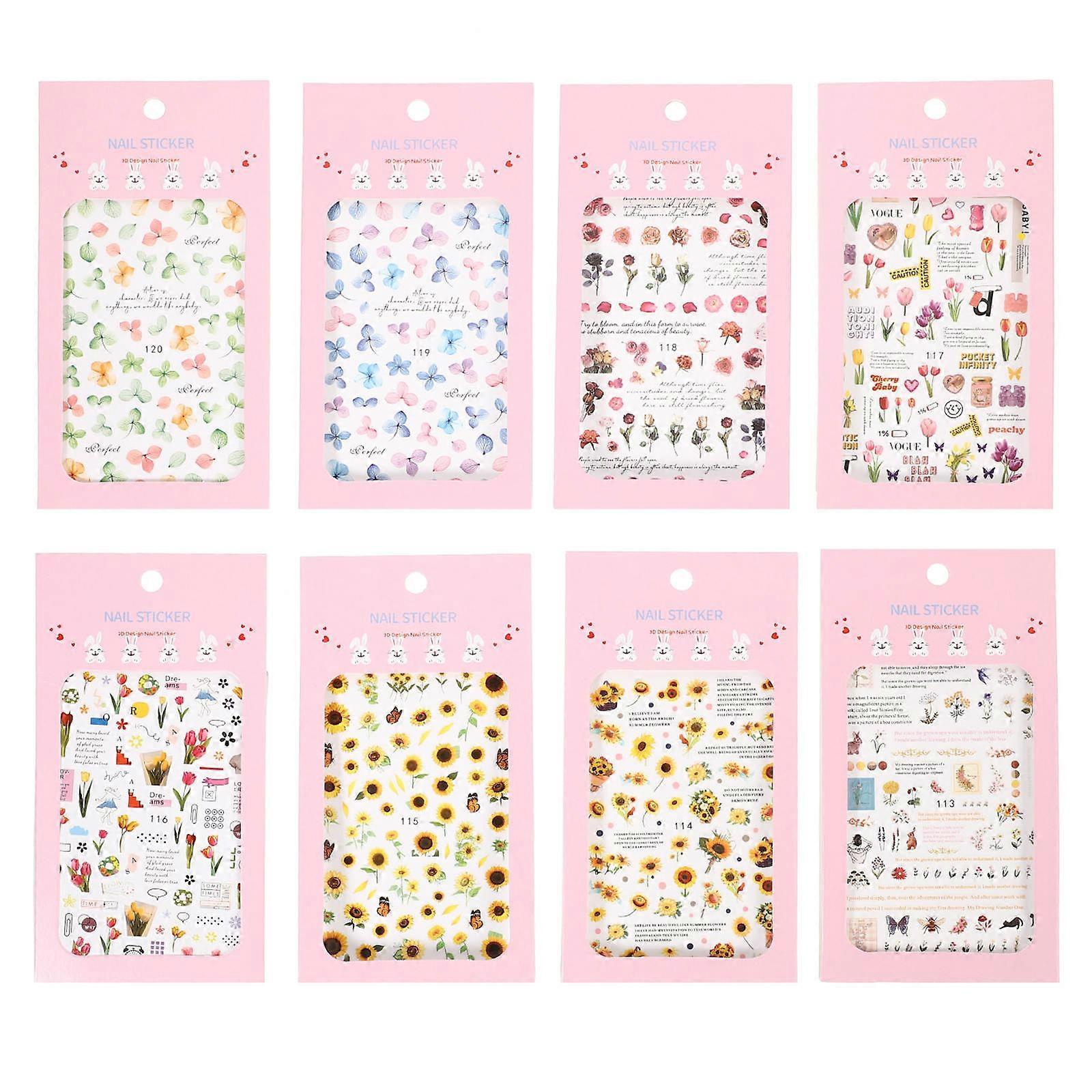 Sunflower Nail Decals Self Adhesive Nail Art Stickers for Women 8 Sheets Quick Application for Beginners and Professionals