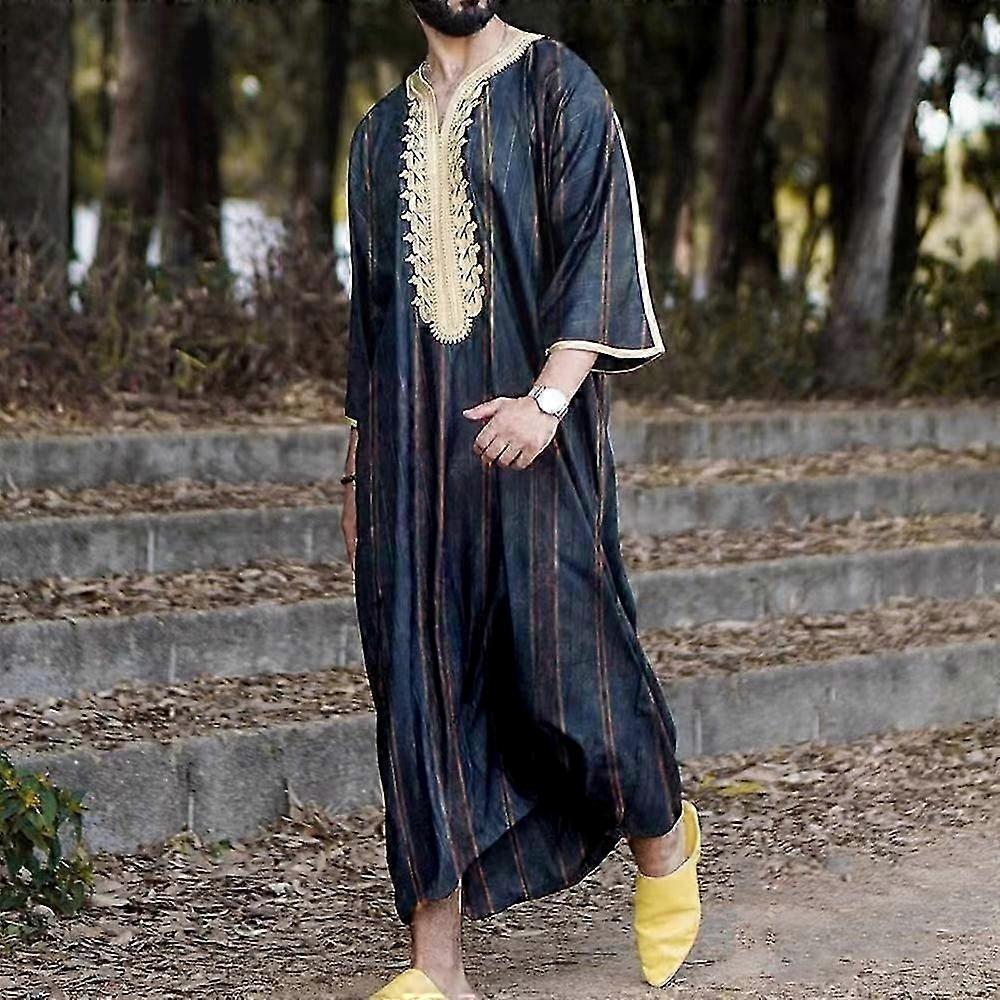 Men's Loose Moroccan Embroidered Summer Thobe Abaya with Traditional Design