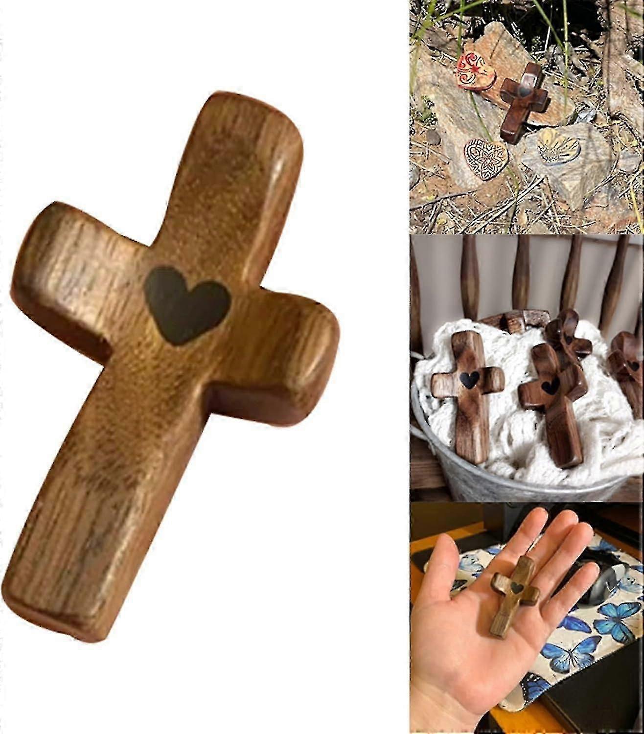 Cross My Heart Encouragement Gift, Handheld Wooden Cross, Cross My Heart Emotional Support Gift, Relieve Anxiety Comfort Cross For Clutching