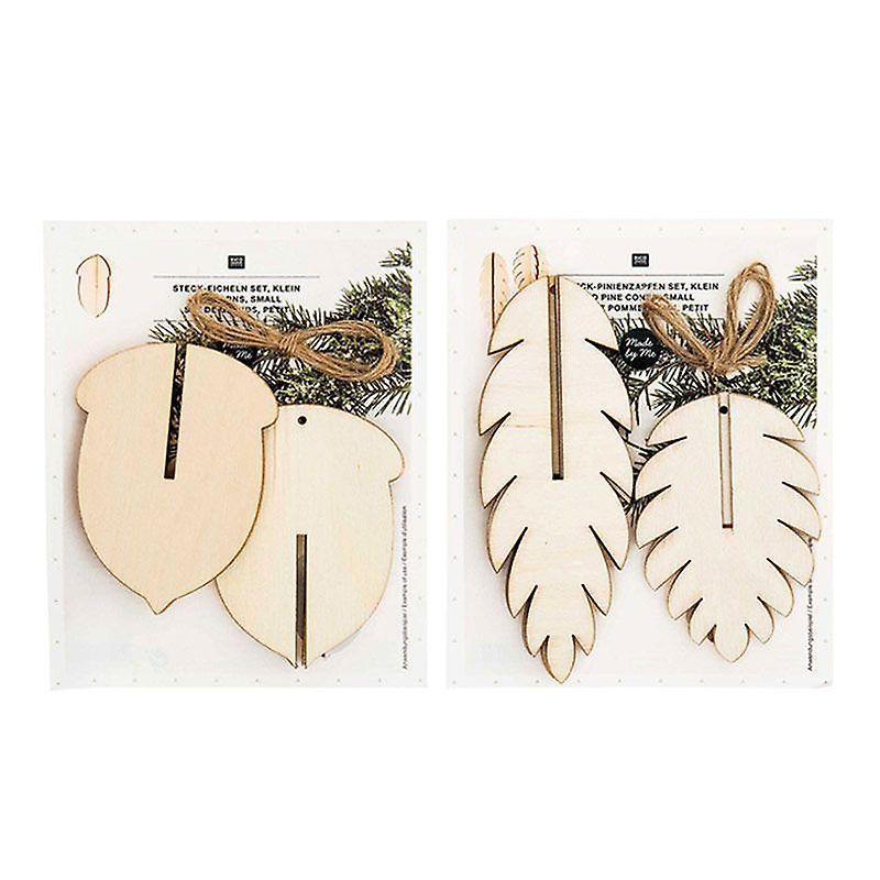 Pack Wooden Christmas decorations - 3 embossed acorns + 3 embossed pine cones