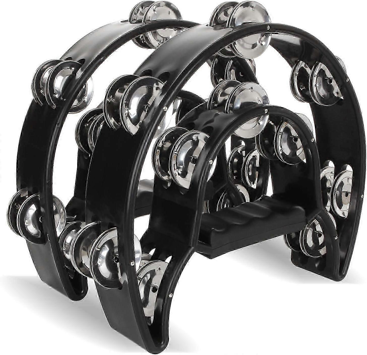 2-Pack Half Moon Cut Plastic Tambourines with 40 Metal Clanks - Black Dual Row Handheld Tambourines