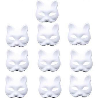Pack of 10 White Masks, Cosplay, Unpainted Masquerade Mask, White Paper Mask, Unpainted Cat Masks for Carnival Cosplay Halloween Party
