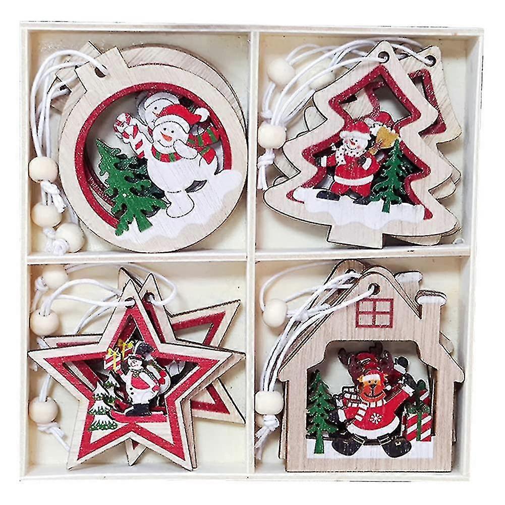 Pack Of 12 Christmas Tree Decorations, Christmas Wooden Pendants, Hollow Carved Ornamentsstyle 1, - xinxx