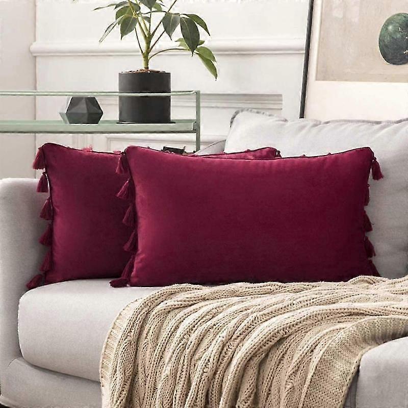 Pack of 2 Velvet Fringe Pillowcases (Red, 12x20 inch)