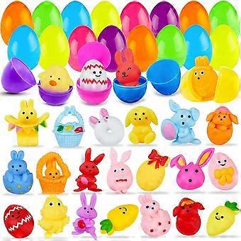 24 Pack Prefilled Easter Eggs with Squishy Toys, Plastic Easter Eggs Prefilled with Kawaii Stress Reliever Squishy Toy for Kids Toddlers Easter Party