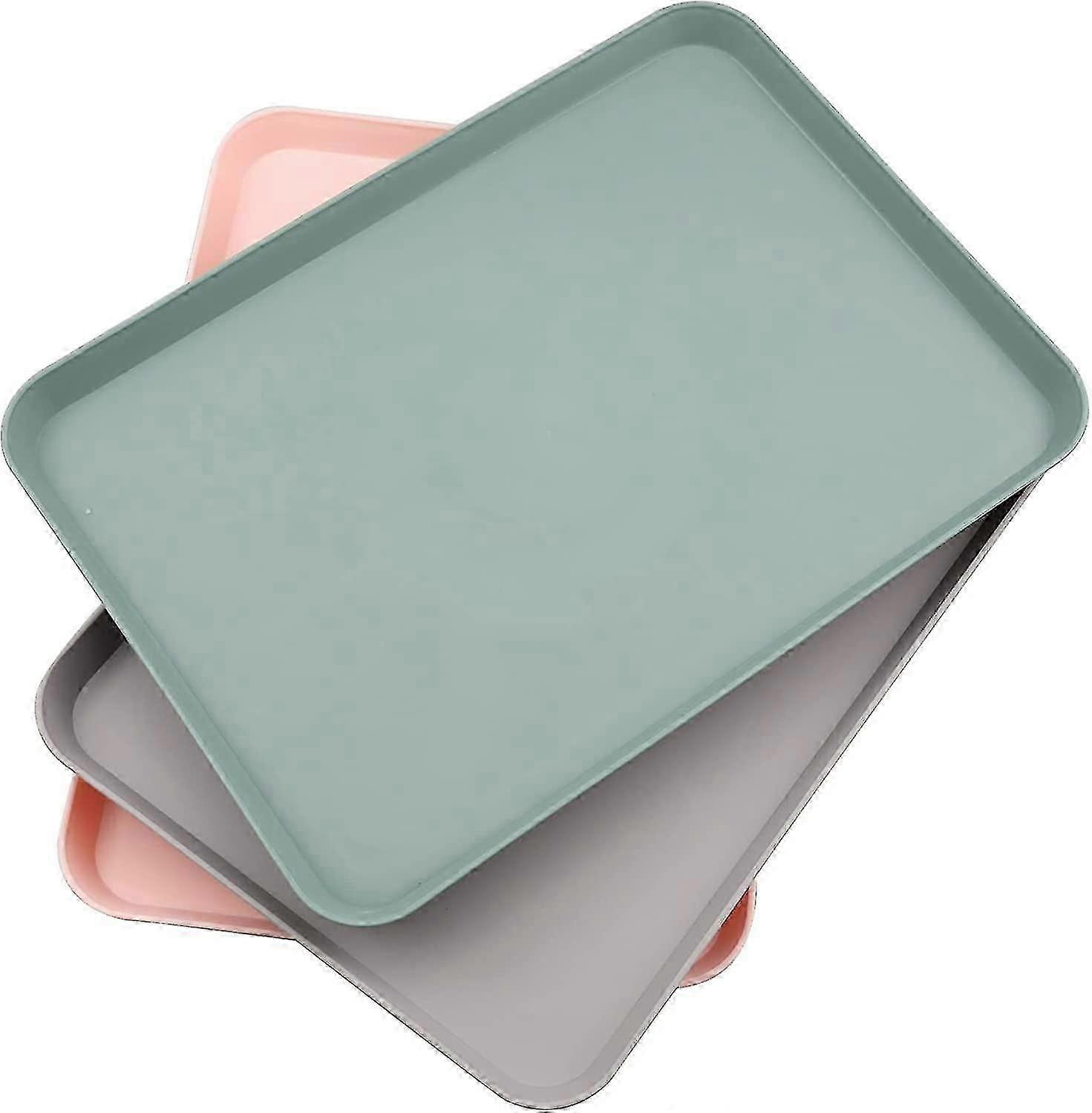 Pack Of 3 Plastic Serving Trays, Plastic Trays, Small Rectangular Trays For Kitchen, Dining Room, Cafe, (pink, Grey, Grey-green)