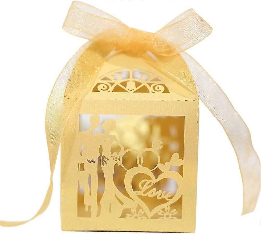 Pack of 50 Wedding Favor Boxes Candy Box Favor Boxes with Bow, Small Candy Boxes Bonboniere Box for Wedding Valentine's Day Birthday Party