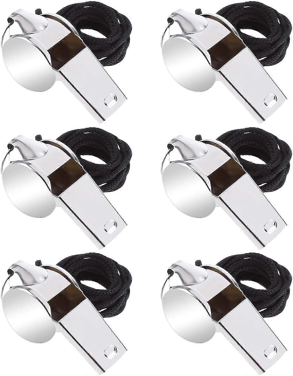Pack of 6 Whistle with Lanyard, Signal Whistles, Stainless Steel Whistles, Football Whistle, Sports Whistle for Coaches-SaoZ