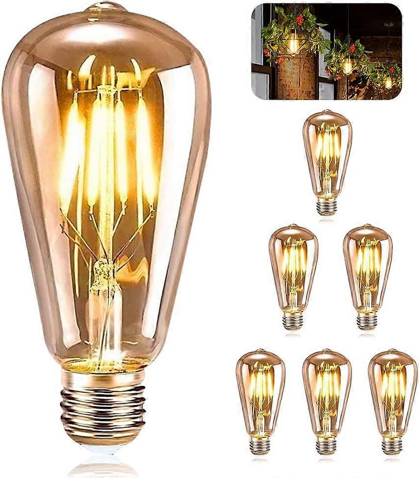 Vintage Edison Bulb E27, 6 Pieces E27 Vintage Filament Bulb ST64 Retro Decorative Lamp LED Edison Bulb Antique Lamp 4W Warm White for Cafe, Bar, Resta