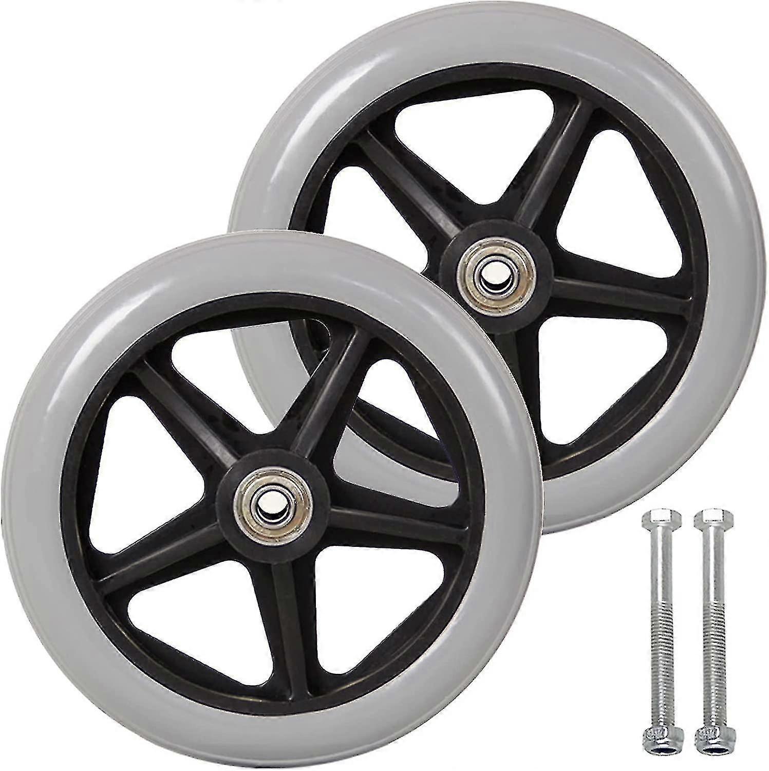 7 Inch Front Caster, 2pcs Wheelchair Replacement Wheels, Non-slip Solid Tire, 170mm Gray In Black, W new