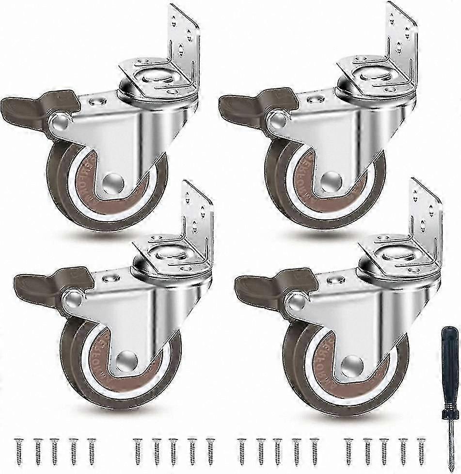 Durable 50mm Rubber Wheels with Brakes, Set of 4 Silent L-Shaped Castors for Furniture Moving, 108kg Weight Capacity