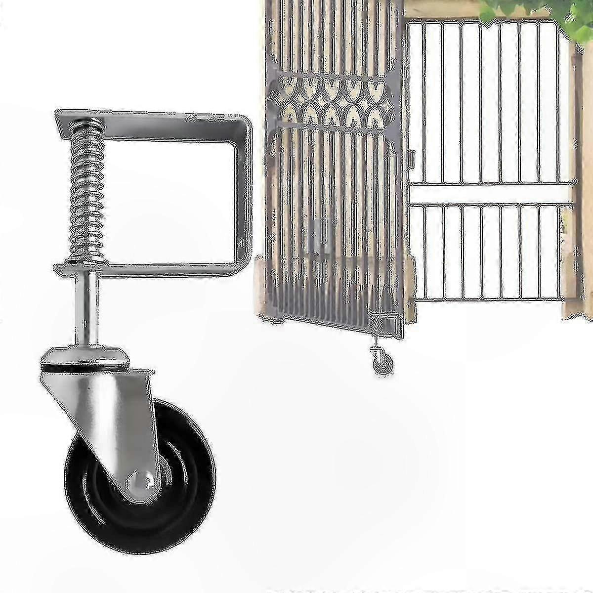 4-Inch Heavy Duty Rubber Gate Wheel with Spring Mechanism, Universal Mount Plate, Max Load 220lbs for Wood Fence Gates