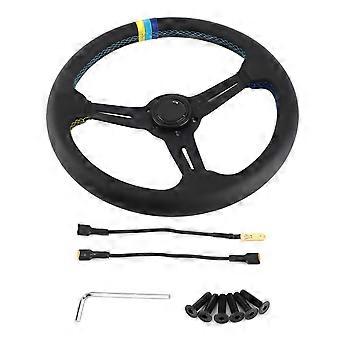 350mm/14in 6 Bolts Half Dish Black Leather Racing Steering Wheel W/ Horn