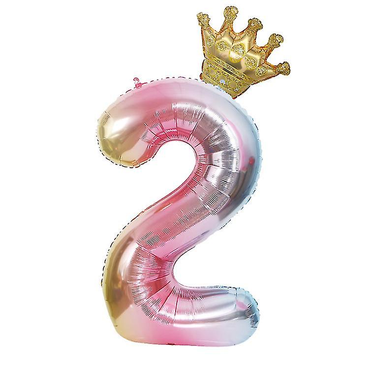 Number Balloons With Crown, 40inch Large Rainbow Number 2 Foil Mylar Helium Balloons, For Princess Birthday Party Decorations Girls Baby Shower Weddin