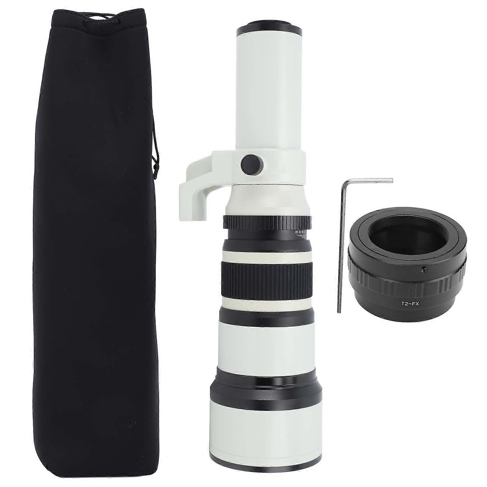 500mm F6.3 Manual Focus Telephoto Lens with T2 FX Adapter Ring Accuracy Scale 500mm F6.3 Telephoto Lens for Natural Scenery White