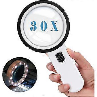 Lighting magnifying glass, illuminated magnifying glass, 30x handheld large magnifying glass, 12 LED magnifying glass