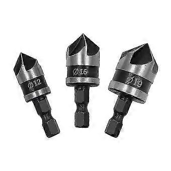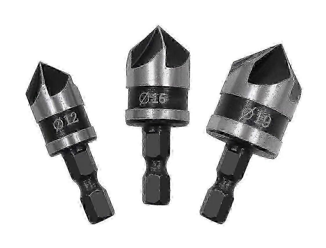 Hex Shank Chamfer Tool Cutter 90 Degree Chamfering Countersink Drill Bit For Wood Plastic Openings (3pcs, Black)