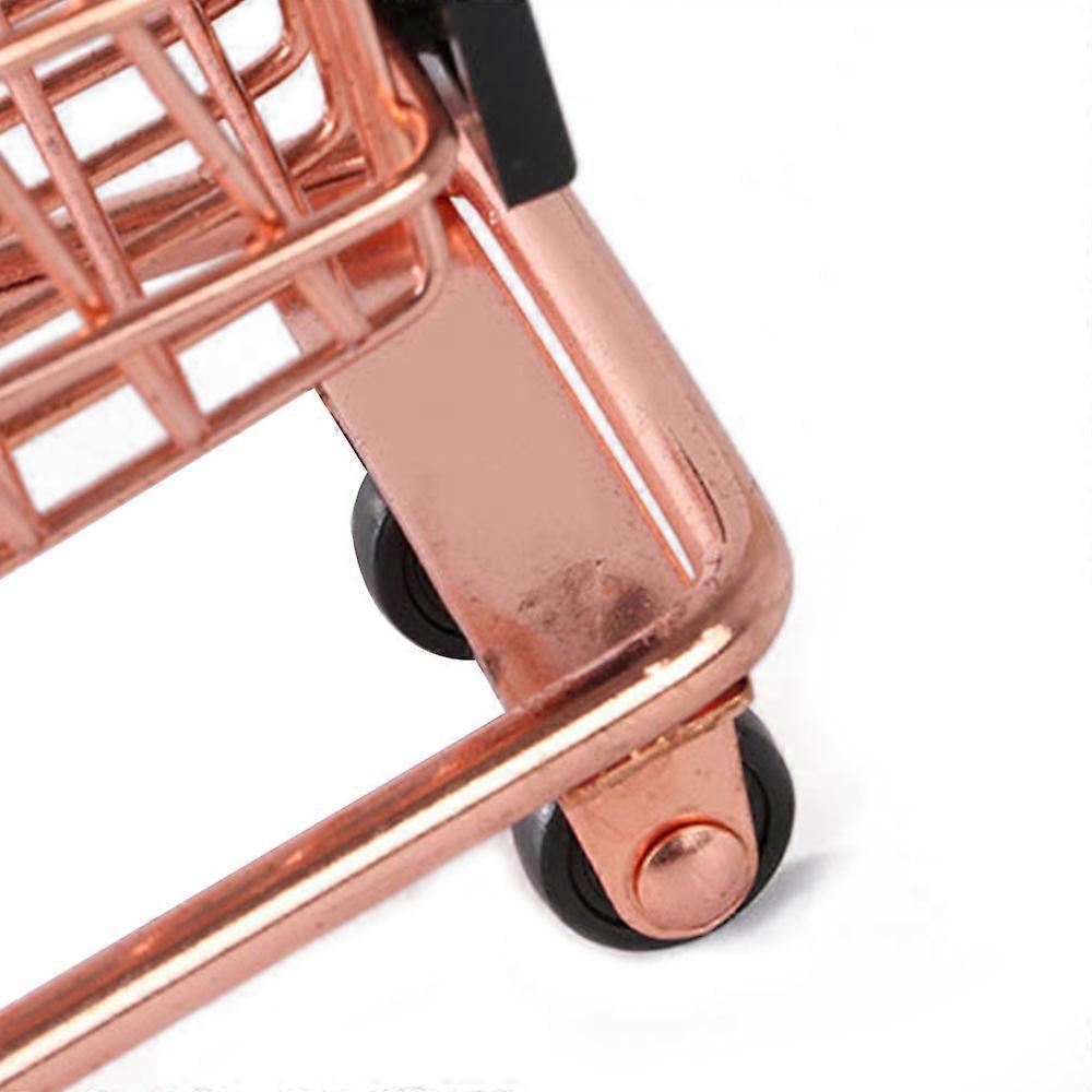 Shopping Cart Iron Double Layer Supermarket Handcart Shopping Utility Cart Mode Toy for Desktop Decor Ornament Golden