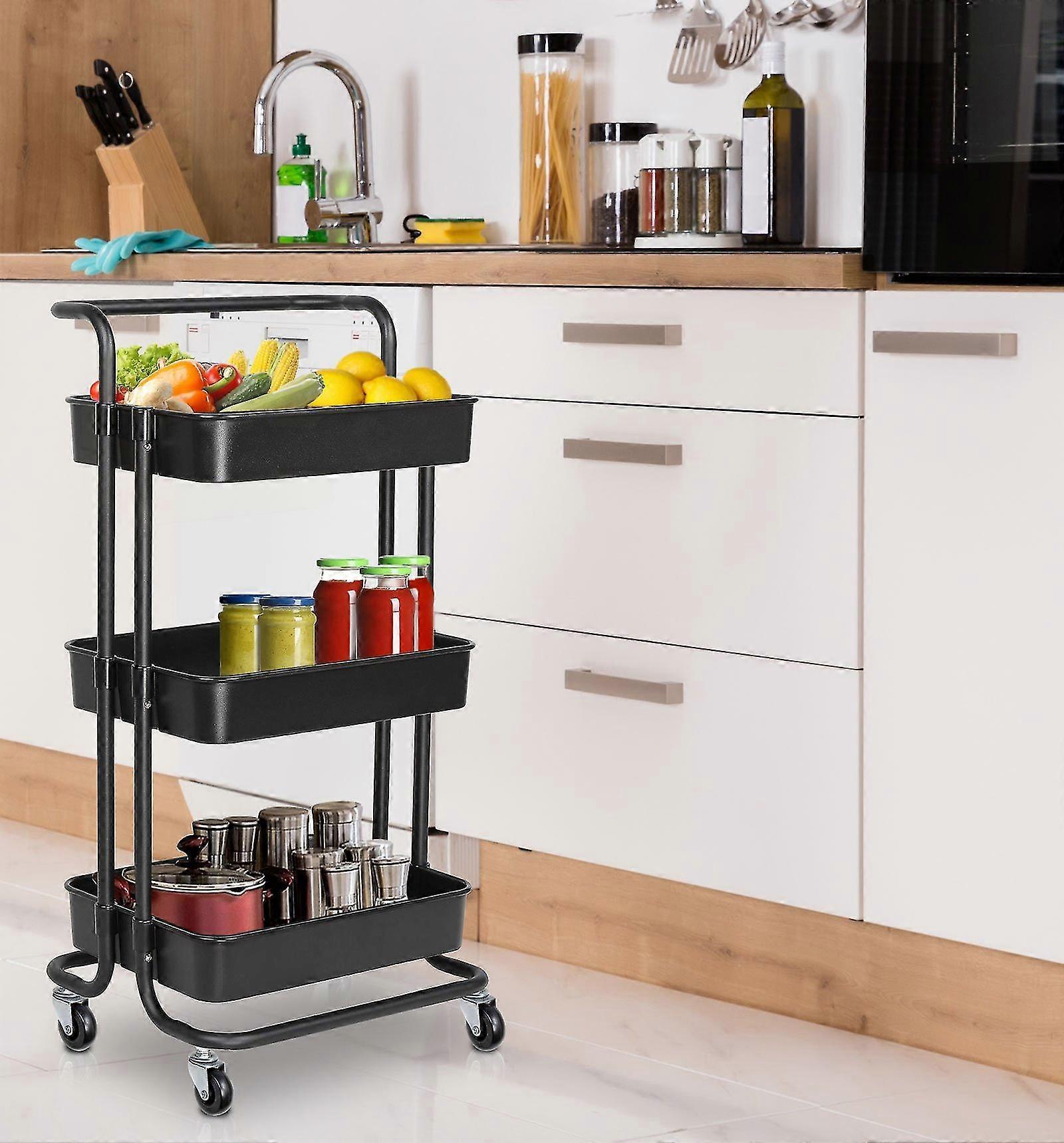 Storage Trolley On Wheels 3 Tier Kitchen Bathroom Storage Trolley Cart