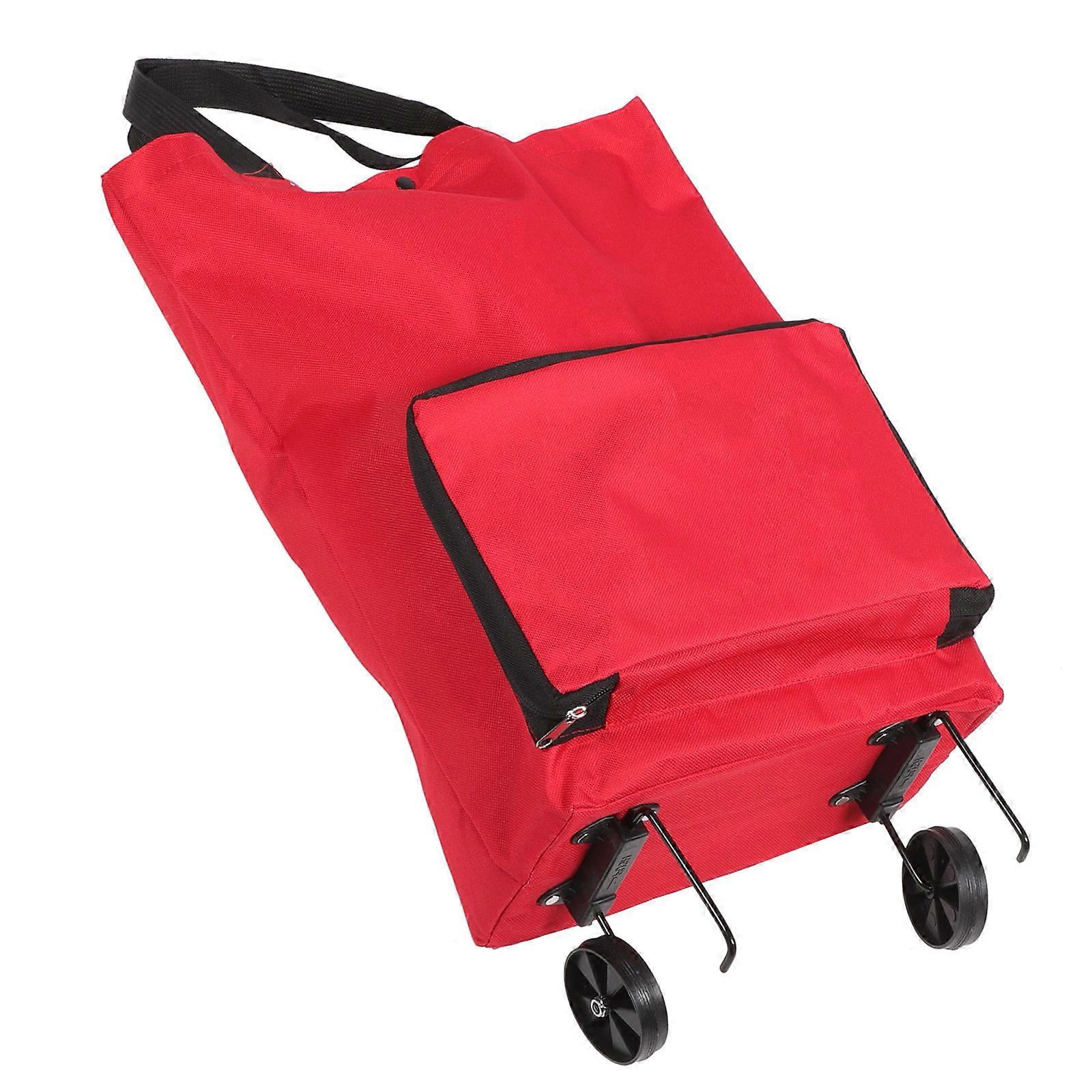 Rolling Collapsible Cart With Wheels Trolley Bag Foldable Shopping Cart Travel Bag Red 48x28cm Fashionable Design 1Set