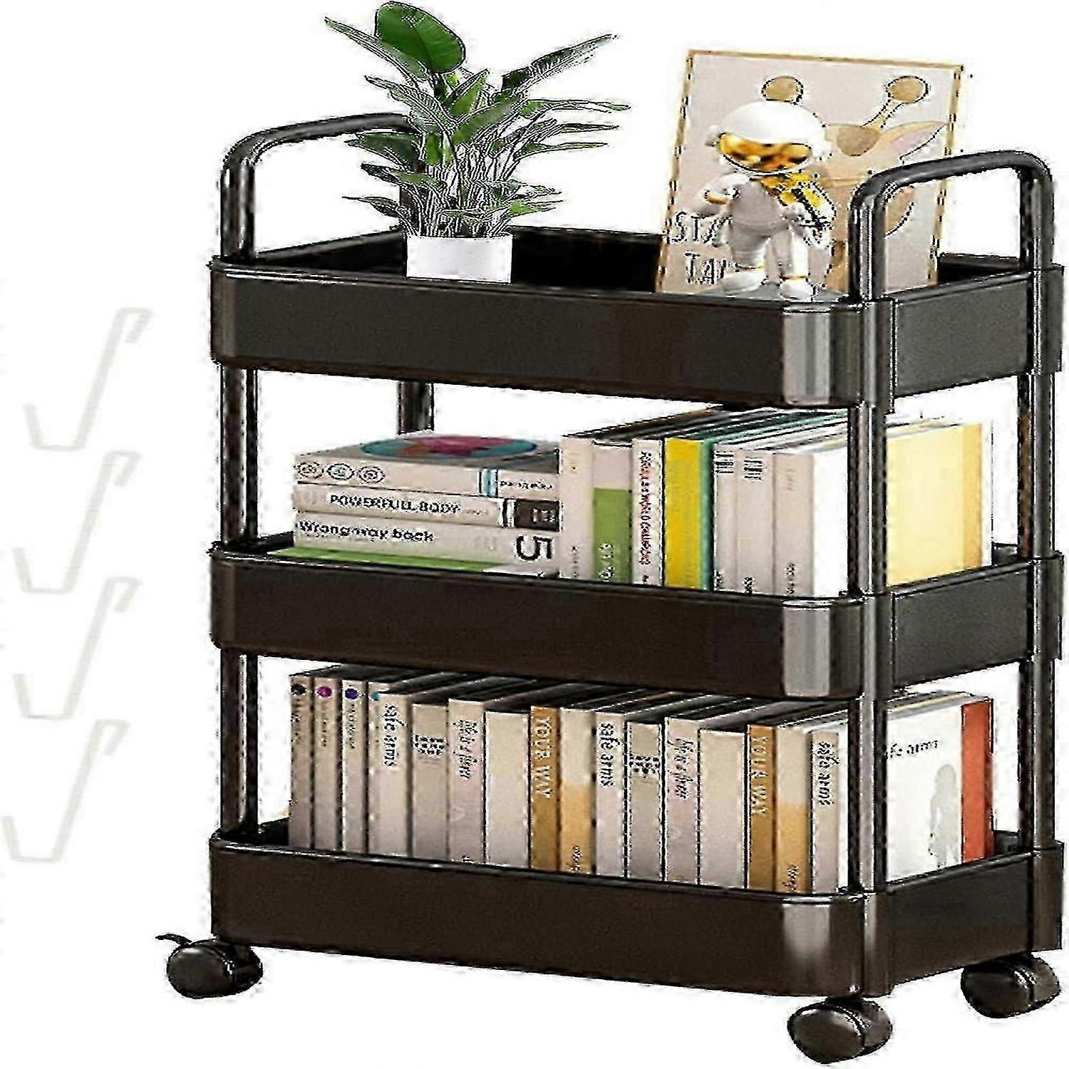 Auxiliary Cart with Wheels, 3 Tier Storage Shelves with Hooks, Rolling Storage Cart, Rolling Shelf Mobile Storage Organizer, Book Organizer