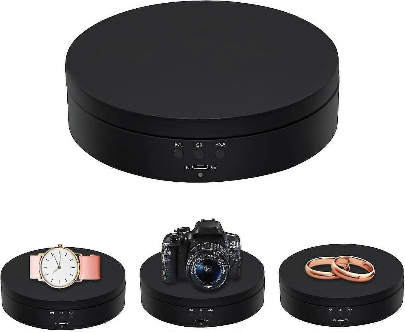 360 Degree Rotating Photographic Display 360 Electric Carousel For Jewelry Display, Watches, Digital Products 1pc (polished Black - Solid Color Model)