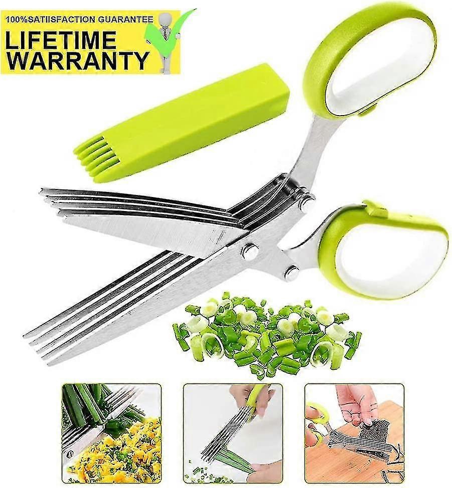 Herb Scissors Set,2-pack Herb Scissors With 5 Blades And Cover For Cutting Shredded Lettuce, Cilantro Fresh, Green Onion Fresh And Etc. Also Can Used